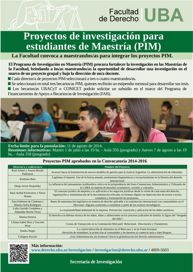 Convocatoria - Proyectos de investigación para estudiantes de Maestría