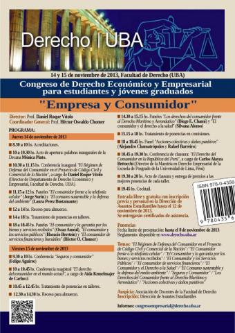 Congreso de Derecho Económico y Empresarial para estudiantes y jóvenes graduados, 14 y 15 de noviembre del año 2013 Facultad de Derecho UBA